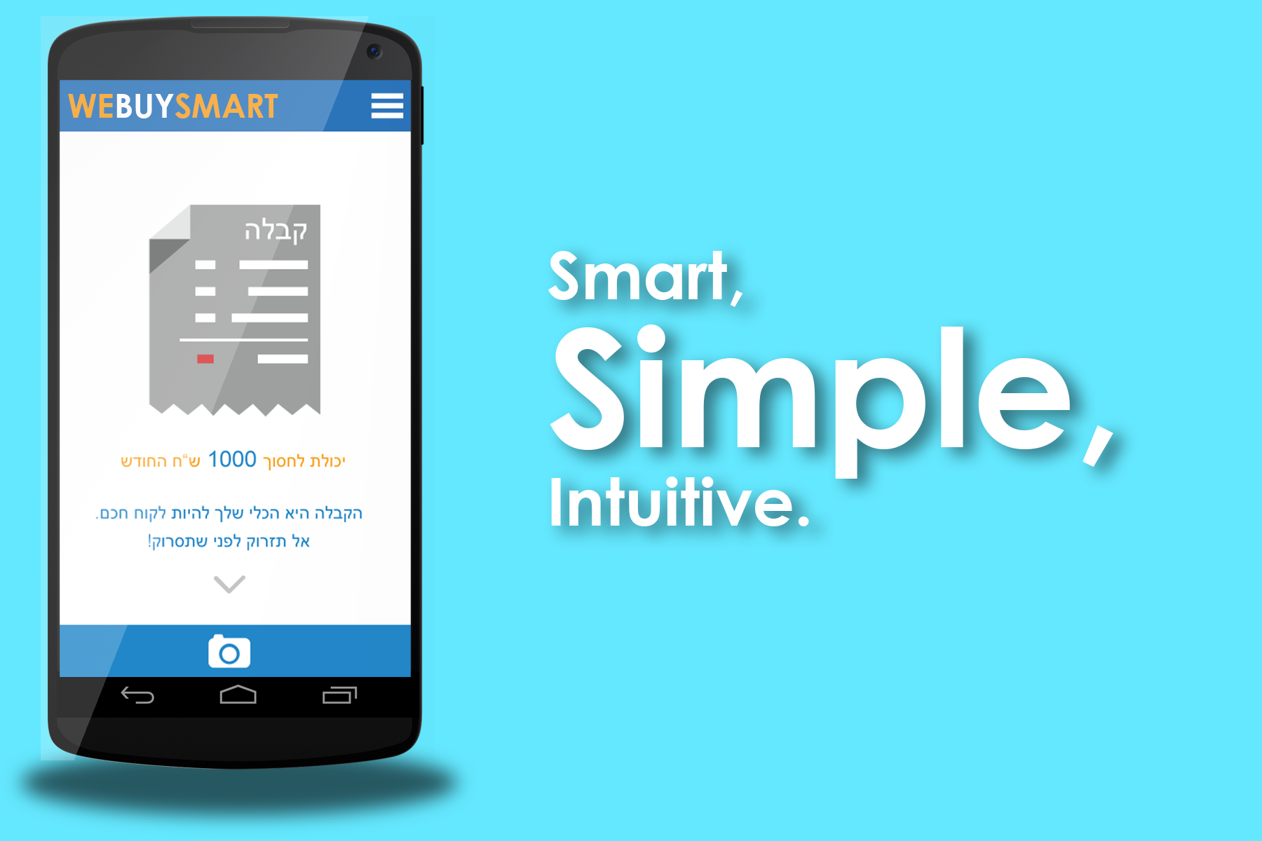 לדעת כל פריט ופריט שקנית, לדעת איפה עוד יכולת לבצע את אותה קנייה וכמה זה היה עולה לך בכל מקום אחר. ע כמו חלום, זה באמת החלום הזה שאלפי ישראלים חולמים כל פעם שהם רואים את המשכורת מתרוקנת ומרגישים חסרי אונים. היום החלום הופך לאפשרי בזכות כלי מדהים וחזק אך גם מוכר לכל ונושן, כלי שכולנו מכרים מאוד מאוד טוב- הקבלות שלנו. כל כך הרבה מידע עיסקי שיכול להרים חברה לגבהים חדשים נימצא שם, כמעט כל קנייה שמבוצעת כל מוצר כל מחיר, ועד .היום הינו זורקים אותו לפח we buy smart תאפשר ללקוחות לנצל את כמות המידע העצומה שנמצאת בקבלות של כולנו כדי לייצר את הכלי האולטימטיבי לניהול ההוצאות, ועולם צרכנות אחר. על ידי צילום פשוט של הקבלה יכול הלקוח לא רק לקבל מידע מנותח על הפרטים אותם קנה והכסף אותו הוא הוציע אלה גם כמה אותה קנייה הייתה יכולה לעלות בכל מקום אחר שבו המשתמשים שלנו קנו סרקו ובדקו. כל אחד מלקוחתינו ייוכל לצלול לתוך דפי החשבון שלו שהיו עד היום חסרי פשר, ושם למצוא את עולם הצרכנות שהוא יצר שמורכב מכל אותם מוצרים קטנים שהוא קונה חודש בחודשו ומחלקם היחסי בהוצאות שלו. הוא ימצא כלים שיכלו לעזור לו לשפר את עולמו לחודש הבא, ותוך כדי כך הוא יתרום לבניית עולם הצרכנות של כולנו עולם שמנצל את חוכמת ההמונים ורותם אותה לשימושם של כל צרכן וצרכן .ניהול החשבון של המחר יתן ללקוח לעמוד לרשונה בחייו מול כלכלה שקופה, מדויקת, ונגישה יותר.